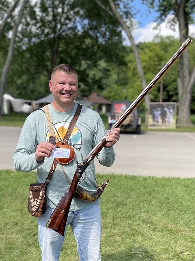 John Kearns was the winner of the fundraiser sponsored by the Fort Boonesborough Foundation. Although not present at the event on Sunday he had puchased the winnining ticket on Saturday while visitng the event. When phoned on Sunday he promptly replied that he would pickup his prize in person and made it to the park before the event closed on Sunday at 5 pm.